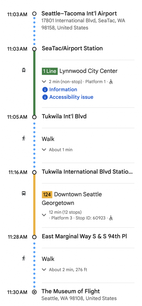 ▲ 「西雅圖機場——飛行博物館」路線圖