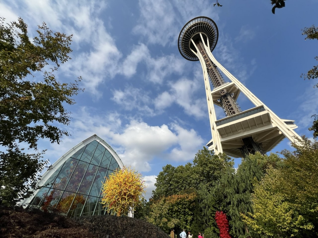 就在太空針塔旁邊,建議排同一天。展館裡的玻璃藝術巨大、華麗、色彩飽滿,是整趟旅程中最好拍的地方之一。戶外玻璃花園與太空針塔一起入鏡的畫面非常經典。