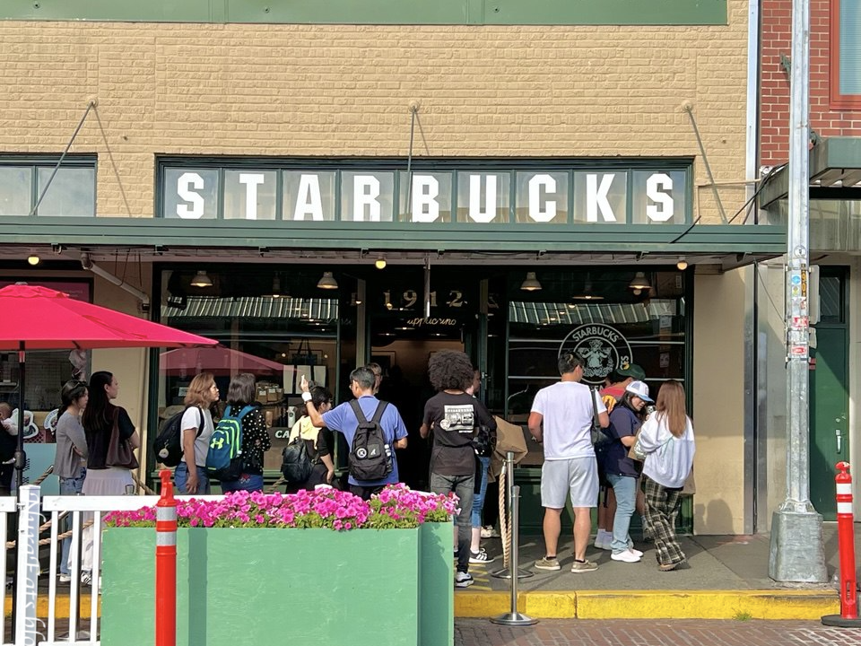 位於派克市場旁邊,是來西雅圖必訪的朝聖地。看見派克市場的招牌後,走路不到一分鐘就會看到全世界第一家星巴克門市。復古木質外觀與最初版本的 Starbucks Logo 很有歷史感,門口也幾乎隨時有排隊人潮,不過隊伍前進的速度滿快的。裡面販售許多雙魚尾logo 限定杯與紀念品,非常多人會特別來買收藏。拍照時建議站在門口復古招牌旁,用斜角取景會更好看。